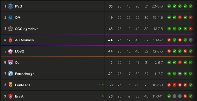 A tabela de classificação do Campeonato Francês está acirrada, com equipes lutando por vagas nas competições europeias e outras tentando se distanciar da zona de rebaixamento. A rodada promete ser crucial para definir o futuro de muitas equipes na competição.
