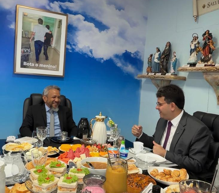 O governador do Piauí, Rafael Fonteles, esteve na sede do Grupo Eugênio na manhã desta sexta-feira (22/12), acompanhado dos secretários Marcelo Nolleto e Pedro Rocha, para o tradicional Café 180, oferecido pelo diretor-geral do grupo, Helder Eugênio.